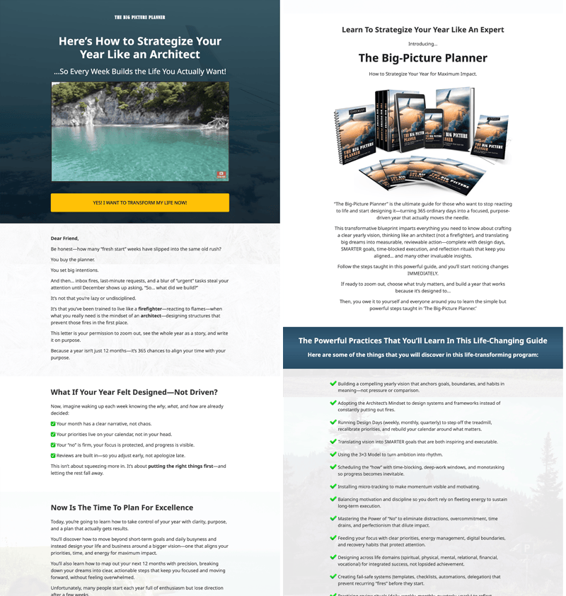 The Big-Picture Planner is our Best Creation in Self-Help niche yet! And we’re handing it over to you so that you can offer tremendous value to your existing self-help audiences or even kickstart your very own Self-Help empire!