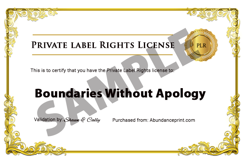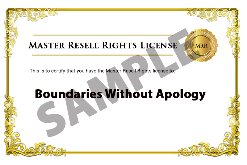 So here’s your chance to grab Boundaries Without Apology with Private Label Rights! Meaning you can take this product and brand it as your OWN!