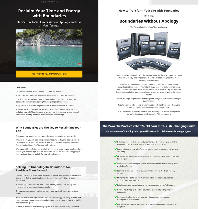 Boundaries Without Apology is our Best Creation in Self-Help niche yet! And we’re handing it over to you so that you can offer tremendous value to your existing self-help audiences or even kickstart your very own Self-Help empire!